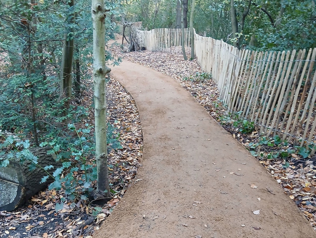 They protect plants and animals and make the woods more accessible during the winter months when the main walking routes get waterlogged and muddy. The Grange Lane entrance is being resurfaced to make the area more accessible for people with reduced mobility. The fencing and dead hedging seen in Dulwich Wood are there to support the recovery of nature.